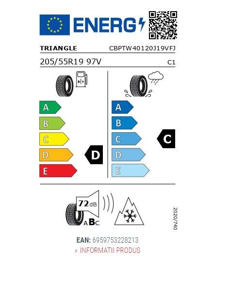 6959753228213 Anvelope TRIANGLE TW401 205 R19 55 97V/XL/D/C/72dB(B) Iarna