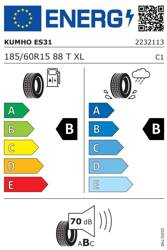 2232113 Anvelopa Vara KUMHO ES31 185/60R15 88T/XL/B/B/70dB(B)