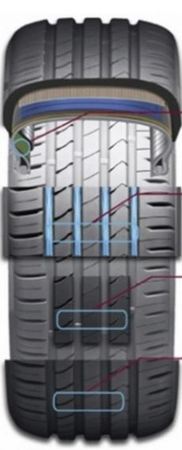 Compusul de cauciuc de ultima generatie din compozitia anvelopei contribuie la reducerea distantelor de franare si aduce un plus de precizie si manevrabilitate, toate acestea la un nivel excelent al confortului.